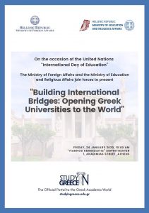 On the occasion of the International Day of Education, we had the honor to attend an event titled: ‘Building International Bridges: Opening Greek Universities to the World’, organised by the Secretariat General for Public Diplomacy of the Ministry of Foreign Affairs and the Secretariat General for Higher Education of the Ministry of Education.